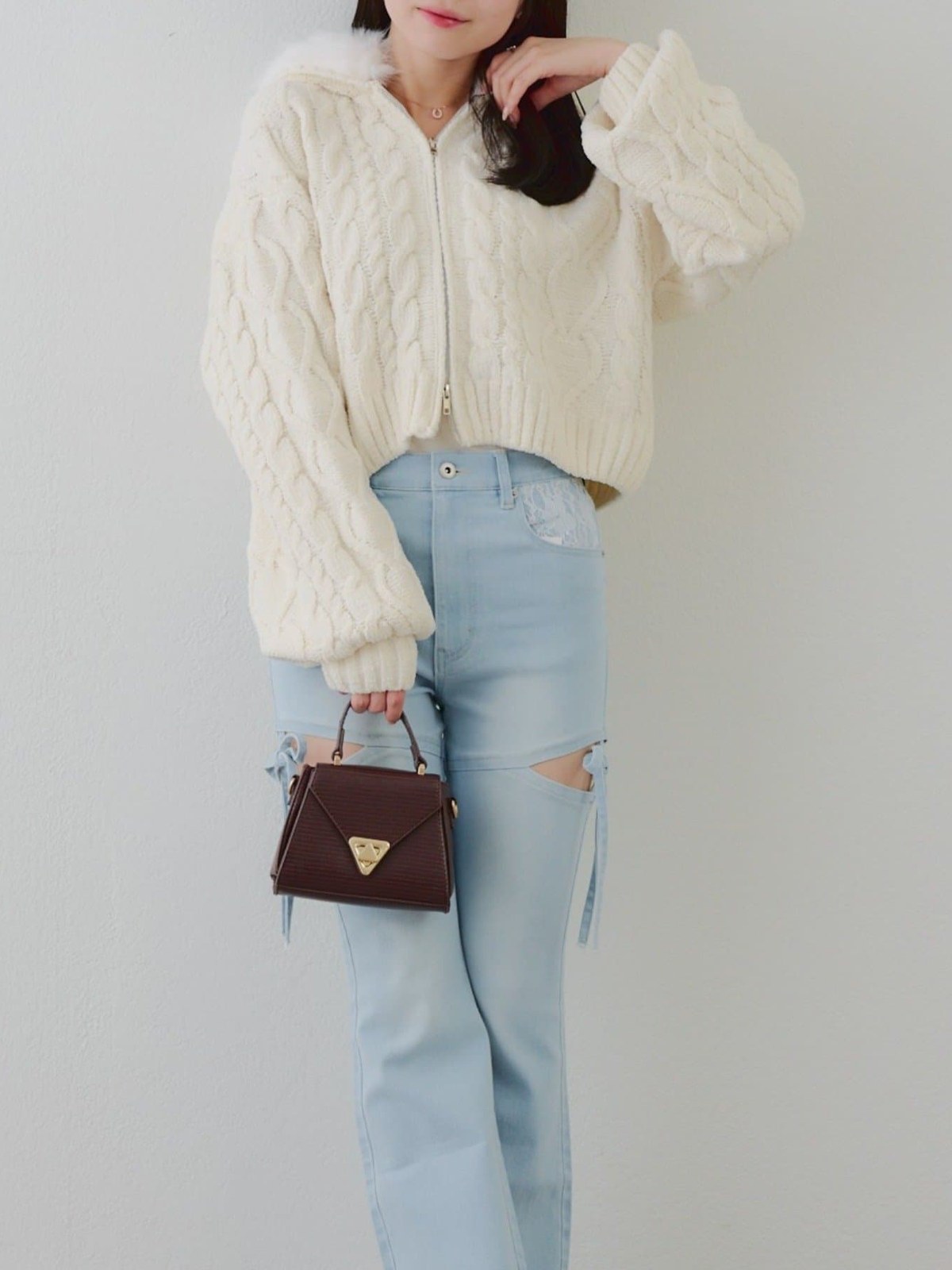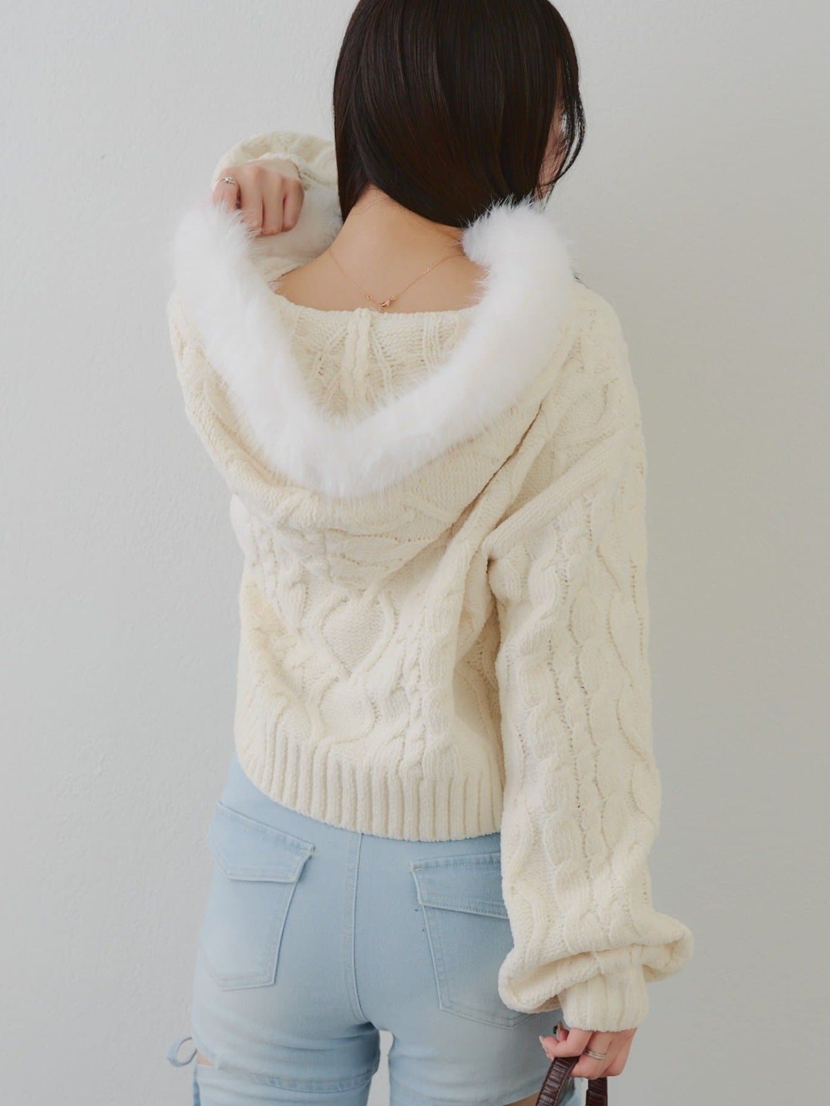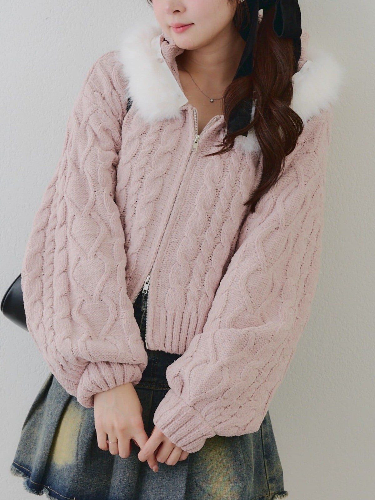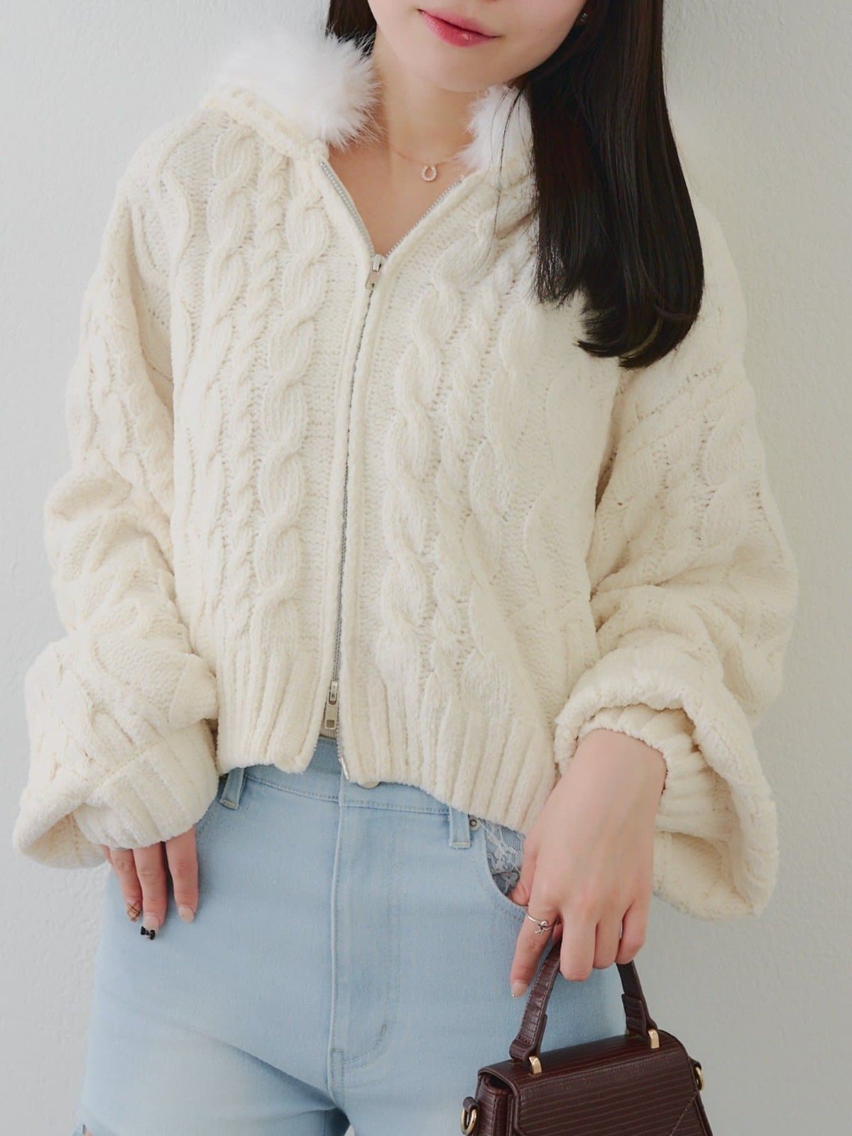 RMAF 絨毛短版針織雙拉鍊外套/可拆換造型