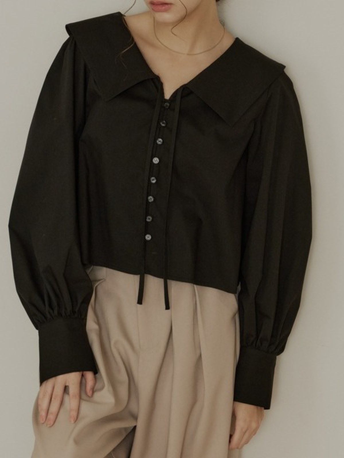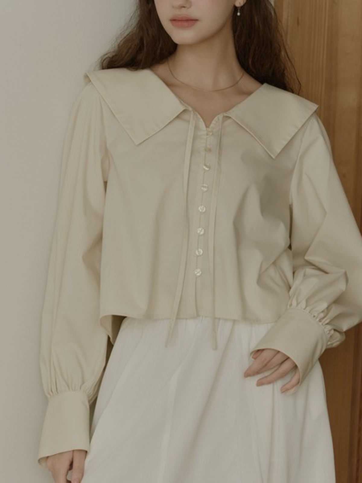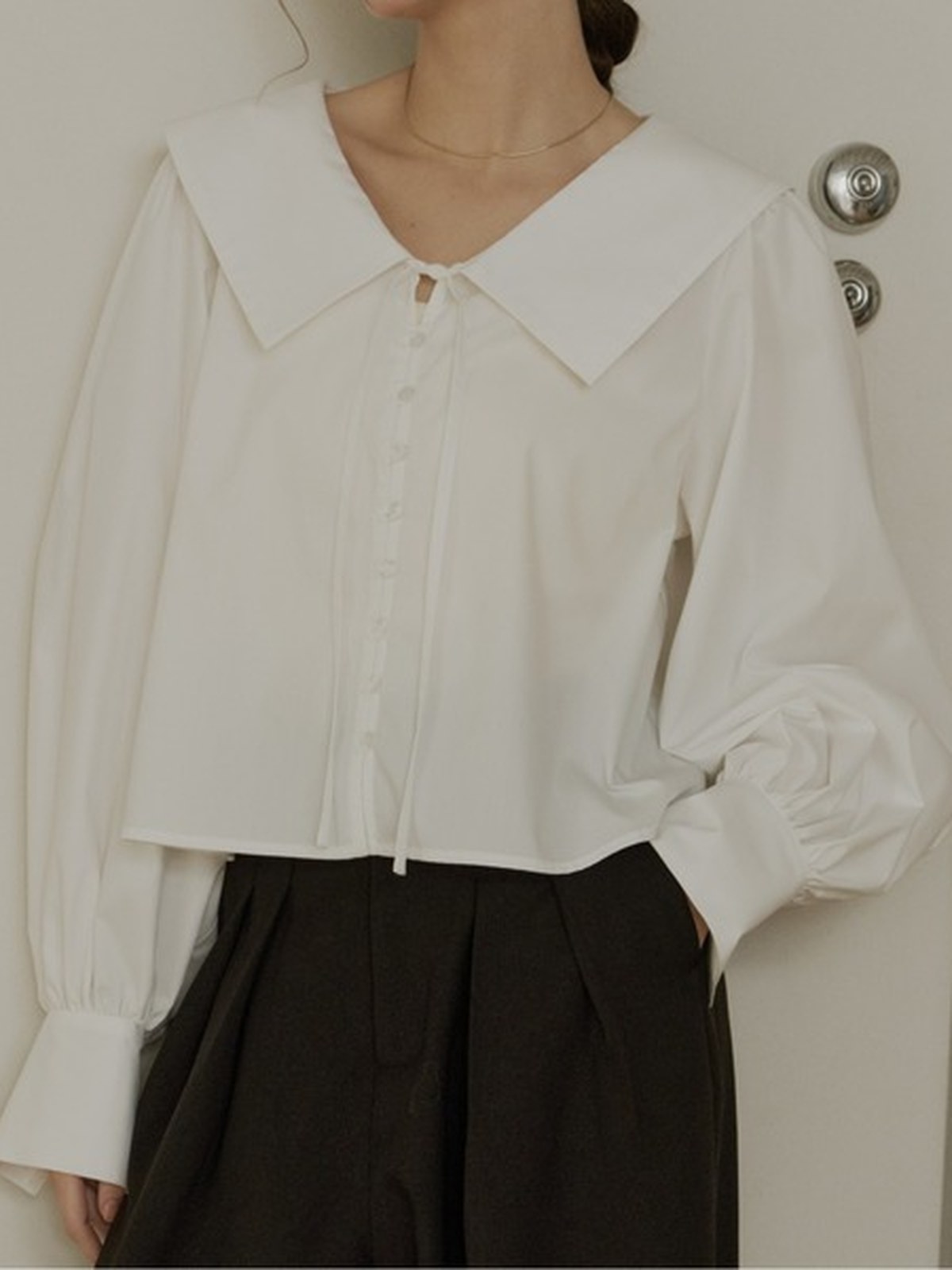 OLUN 大寬領短版襯衫