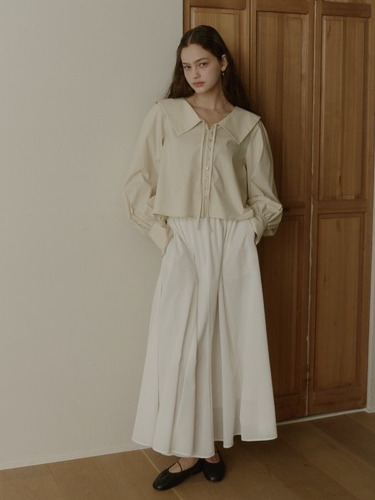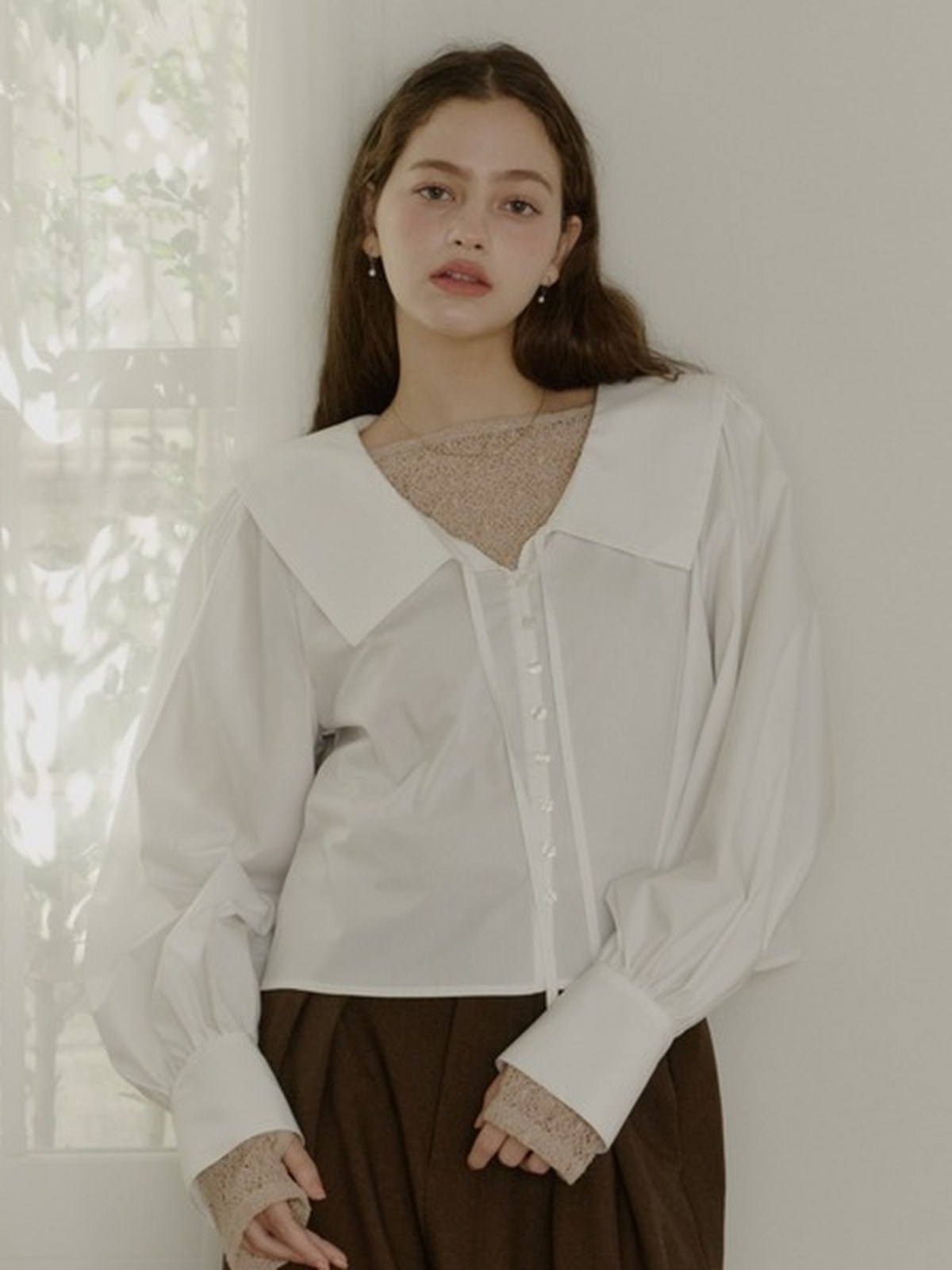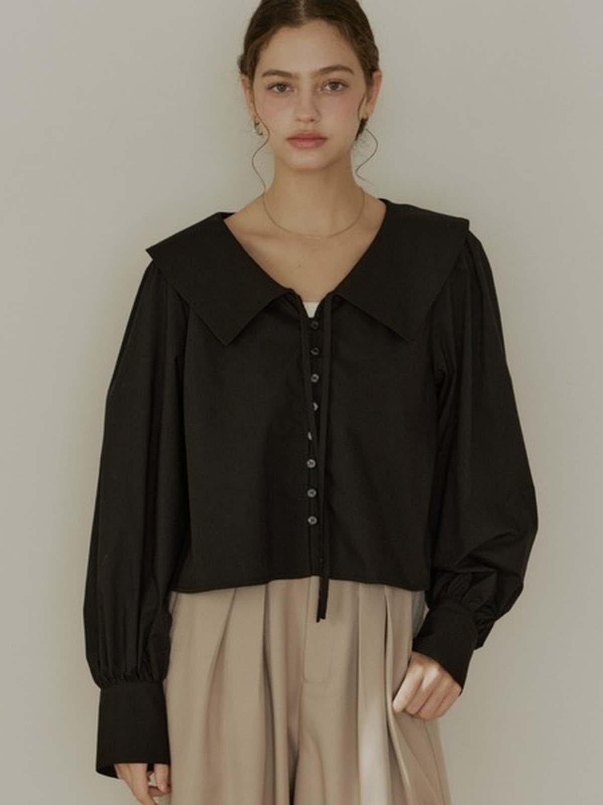 OLUN 大寬領短版襯衫