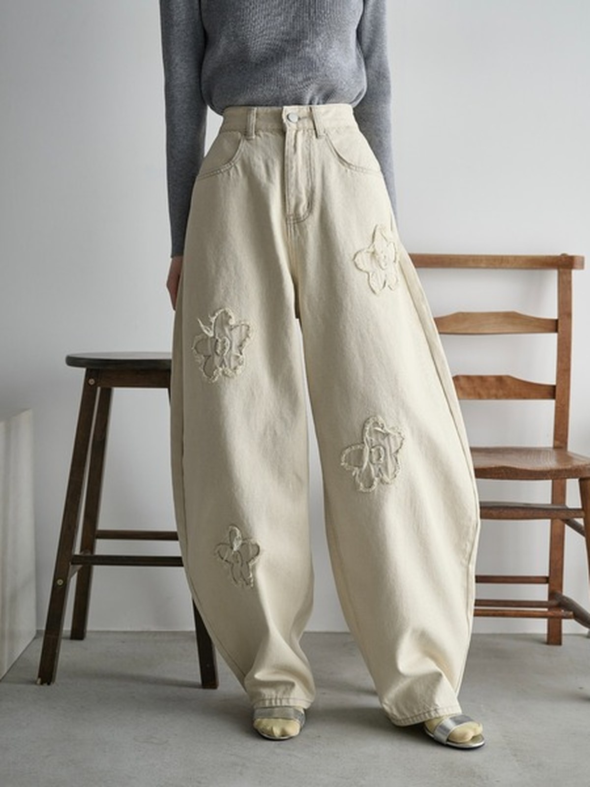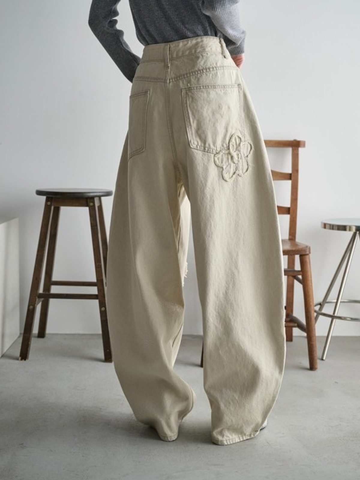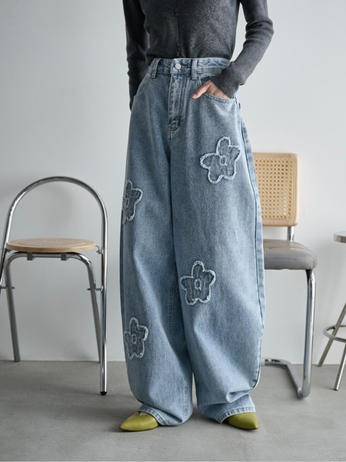 THE YOn 花花圖案彎刀褲/牛仔褲