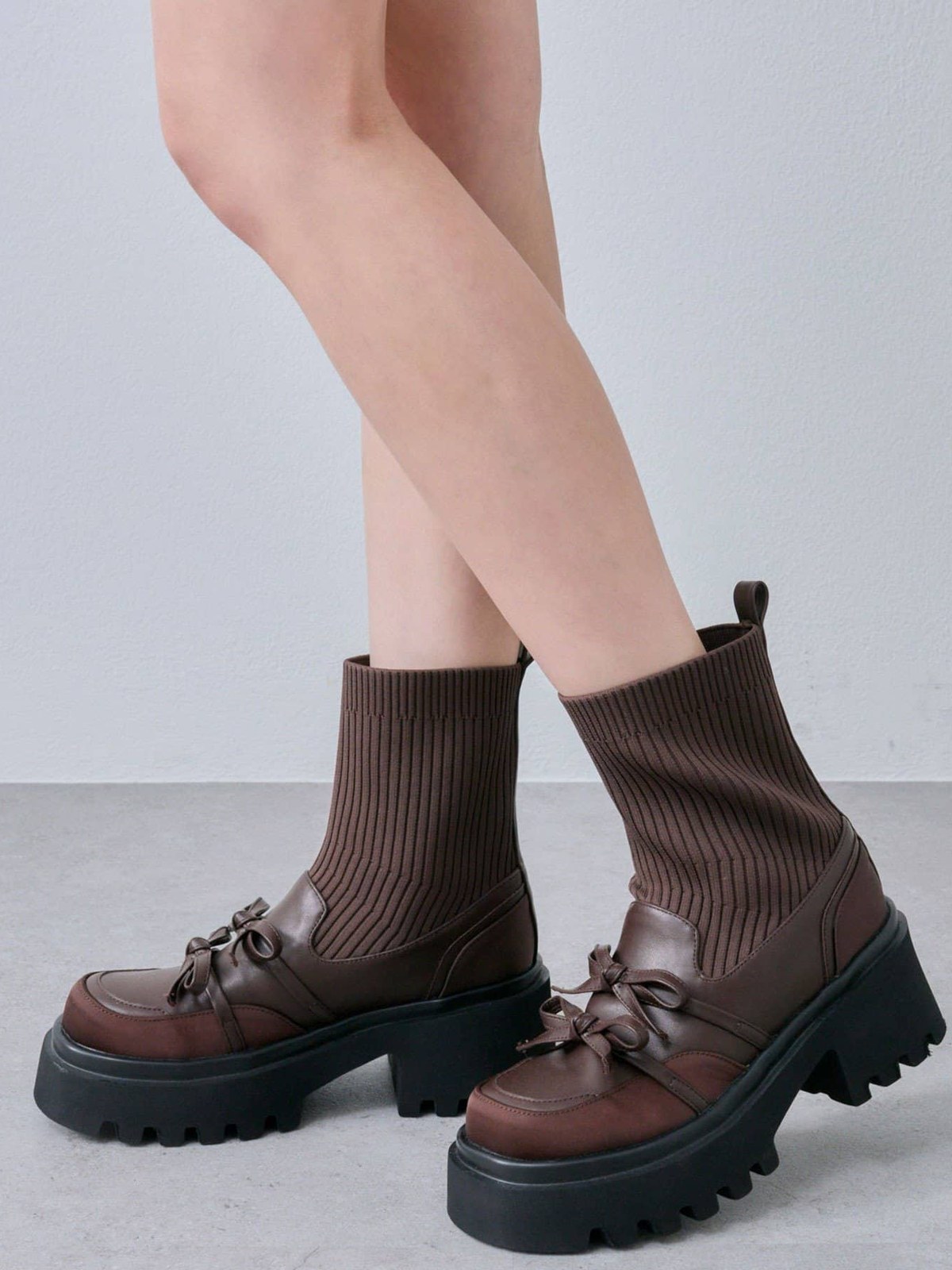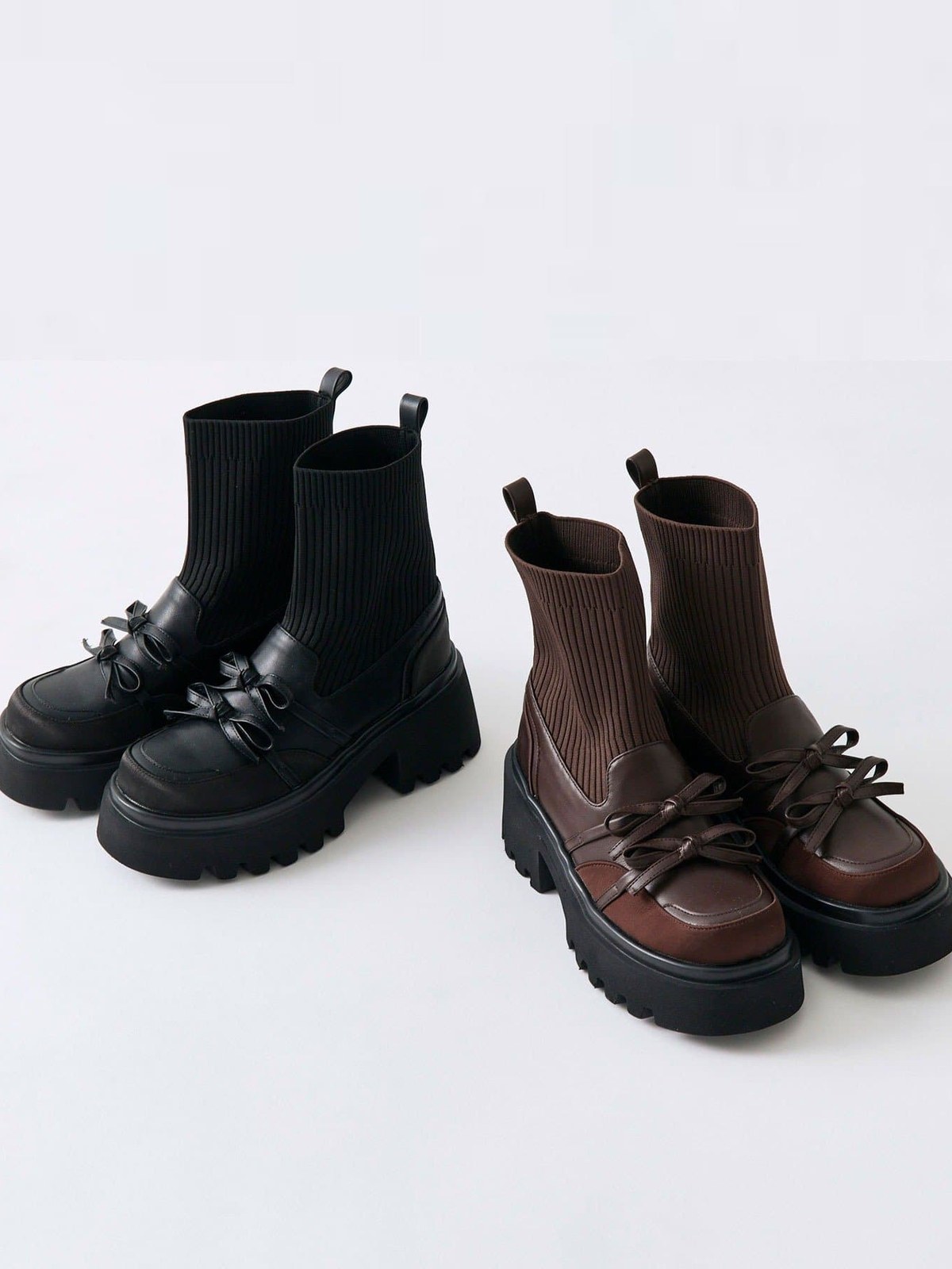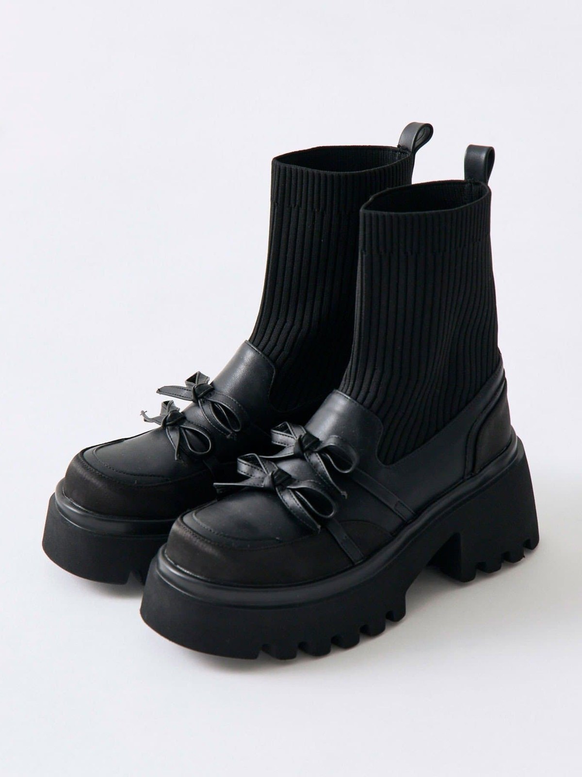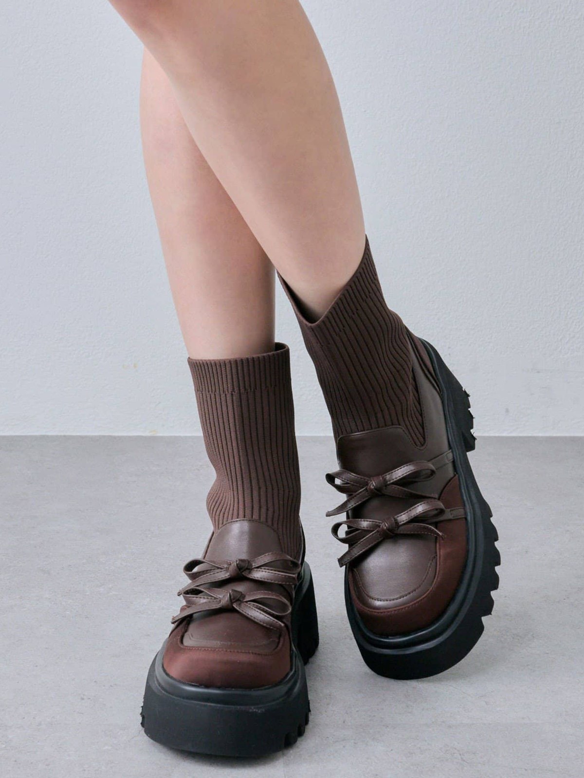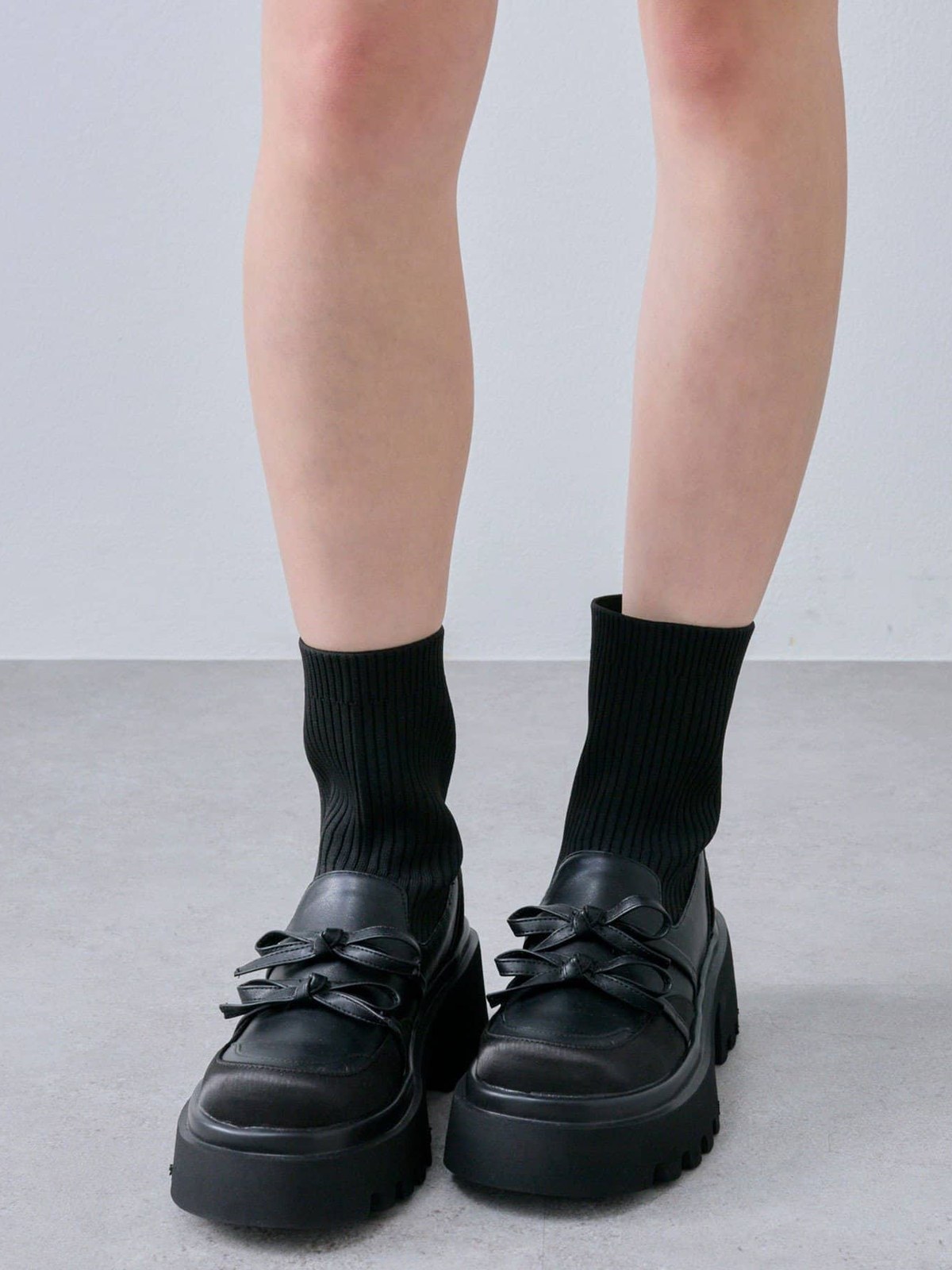 OLIVE des OLIVE 羅紋針織雙緞帶樂福鞋