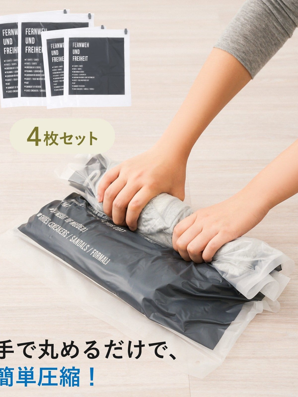 這款衣物壓縮袋非常適合旅行或出差時打包。 只要將衣物放入袋中,捲起即可輕鬆壓縮! 提供兩種尺寸,滿足您的不同需求。 配備止回閥,防止空氣洩漏。