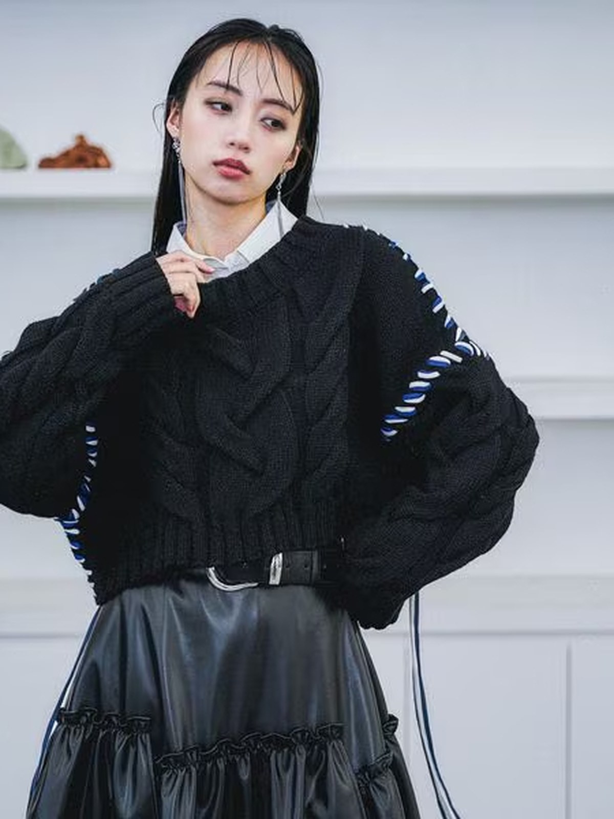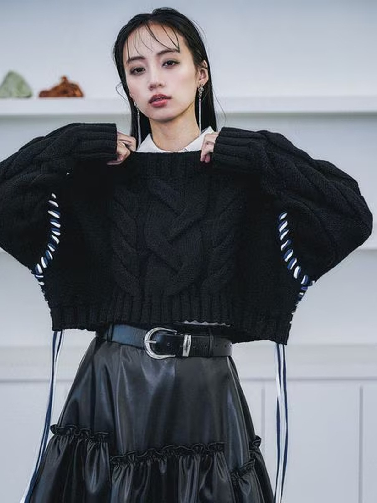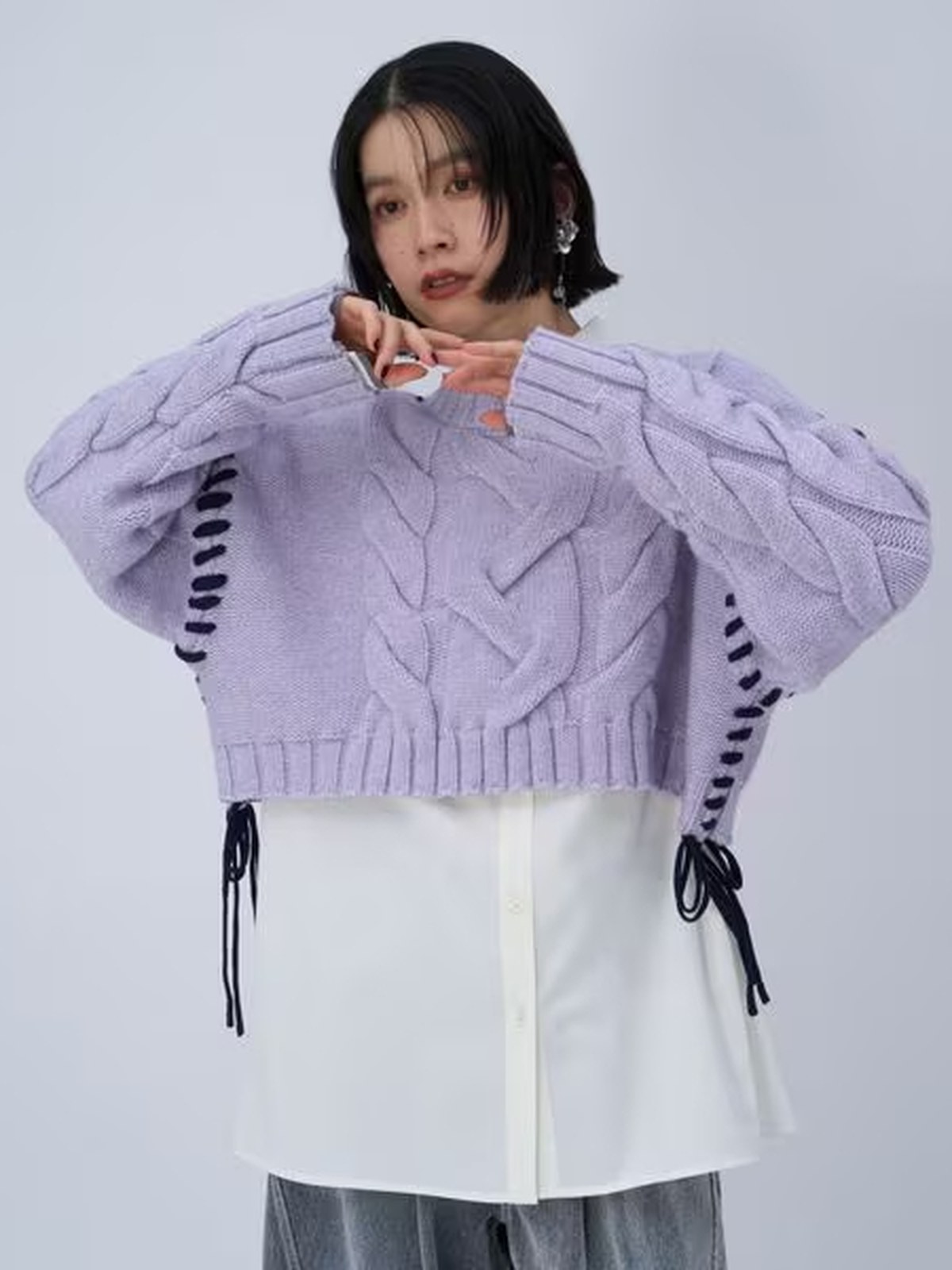 HARE 短版粗麻花針織衫