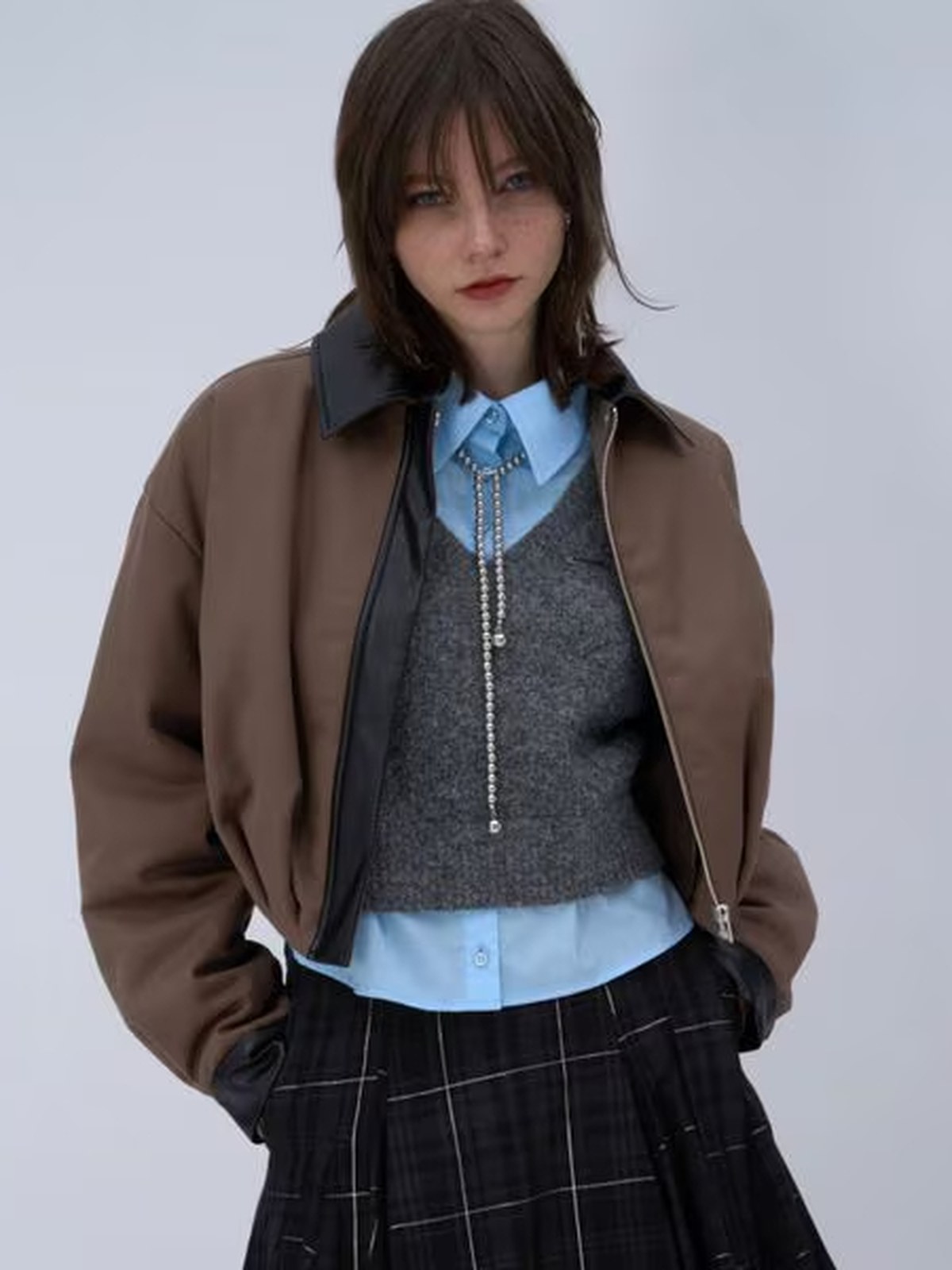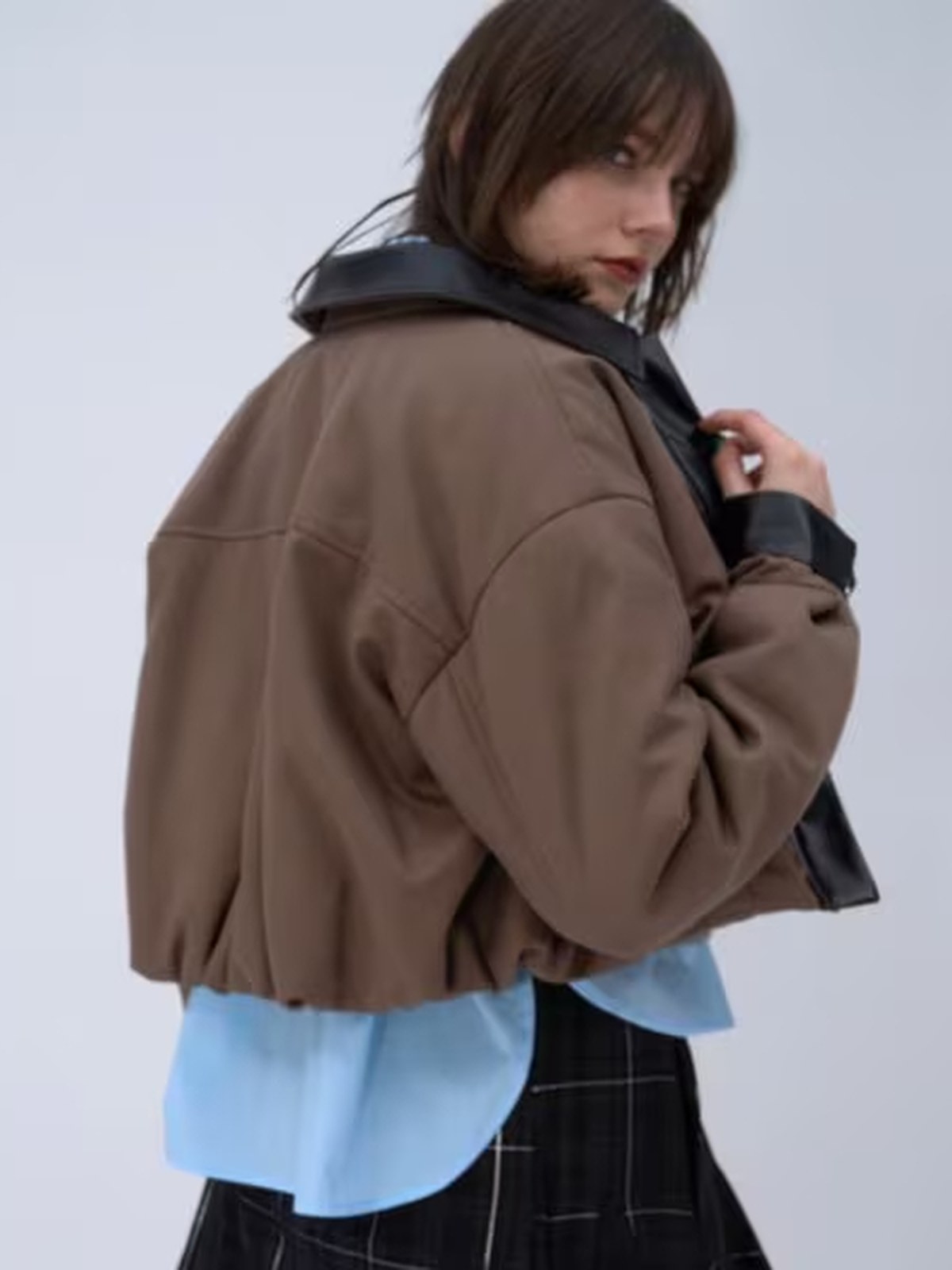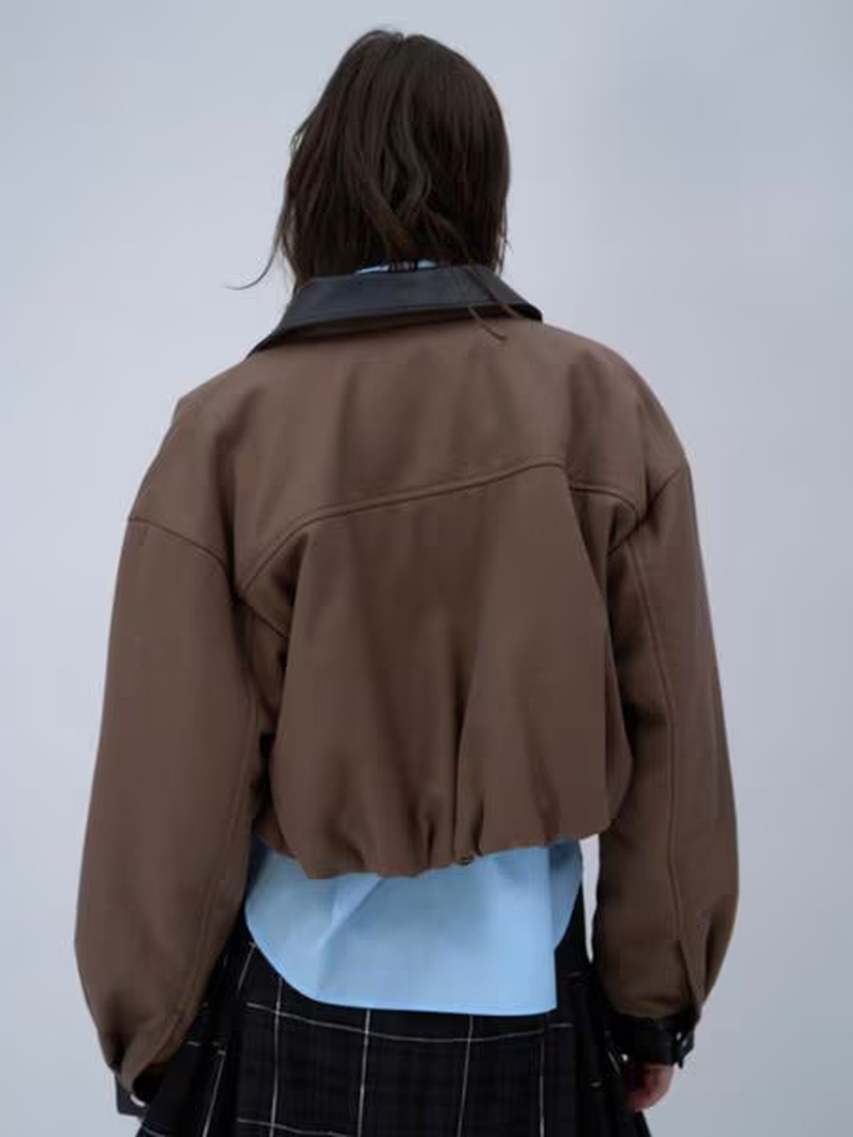 HARE 仿皮褶襉設計短外套