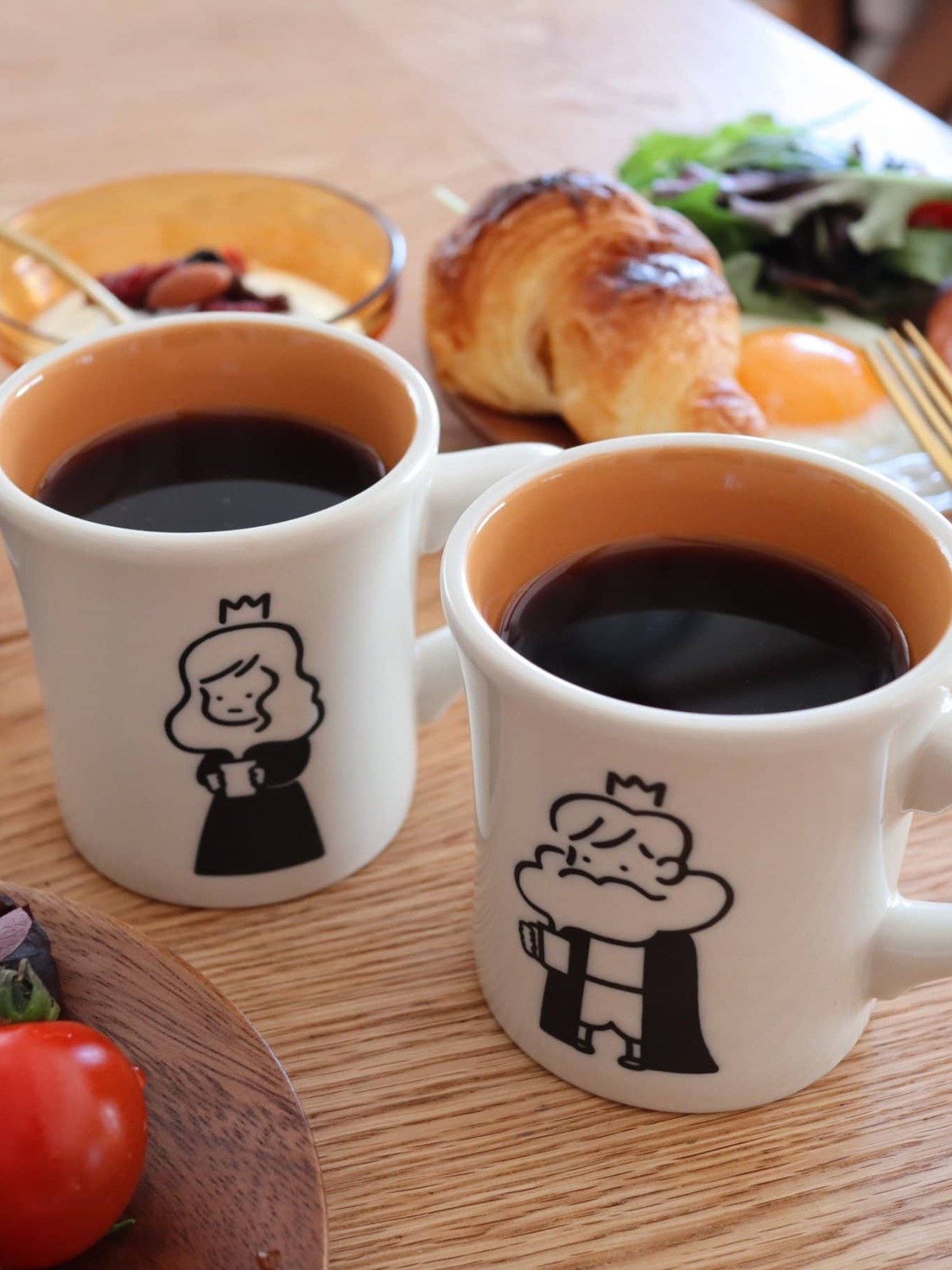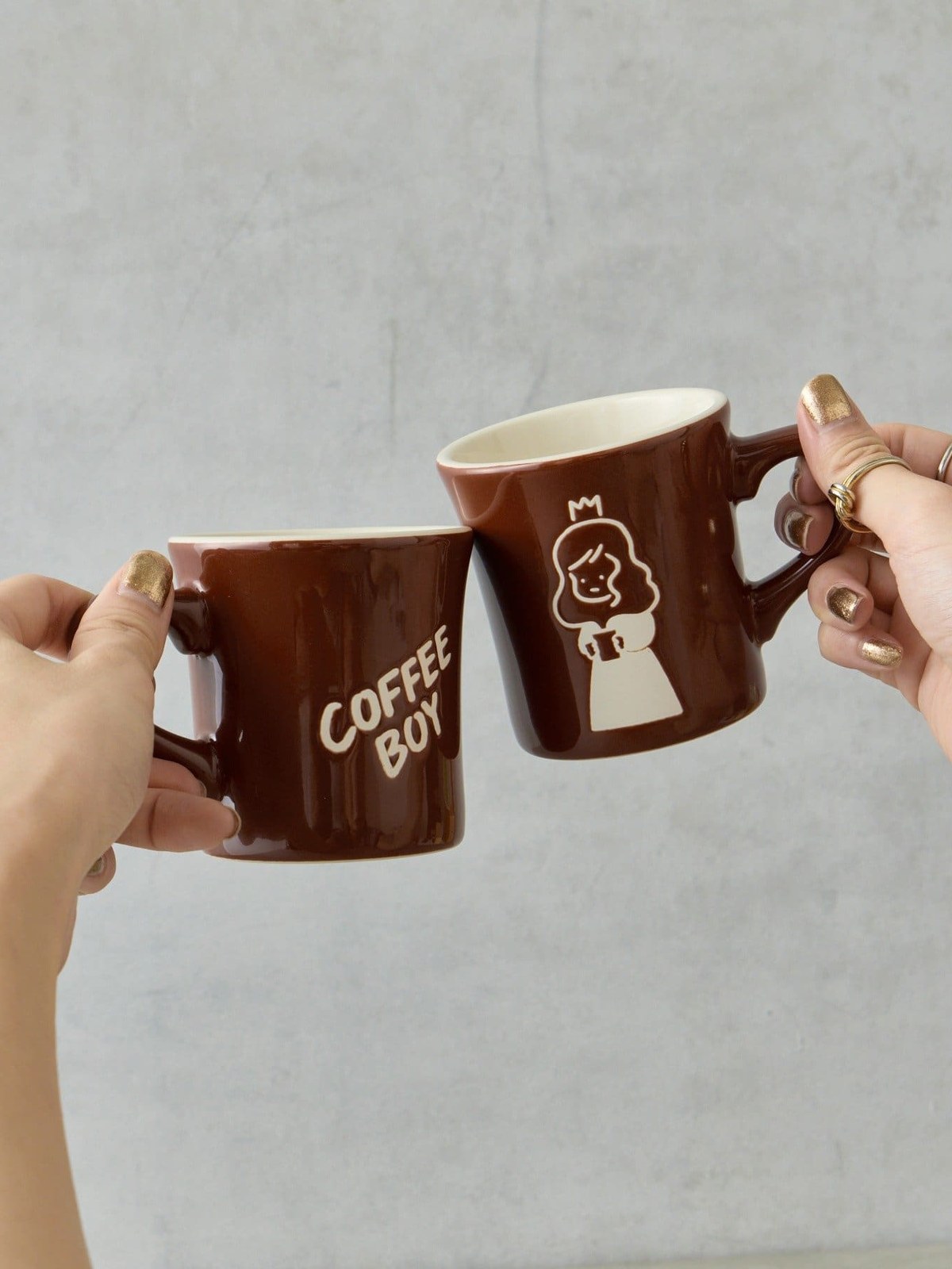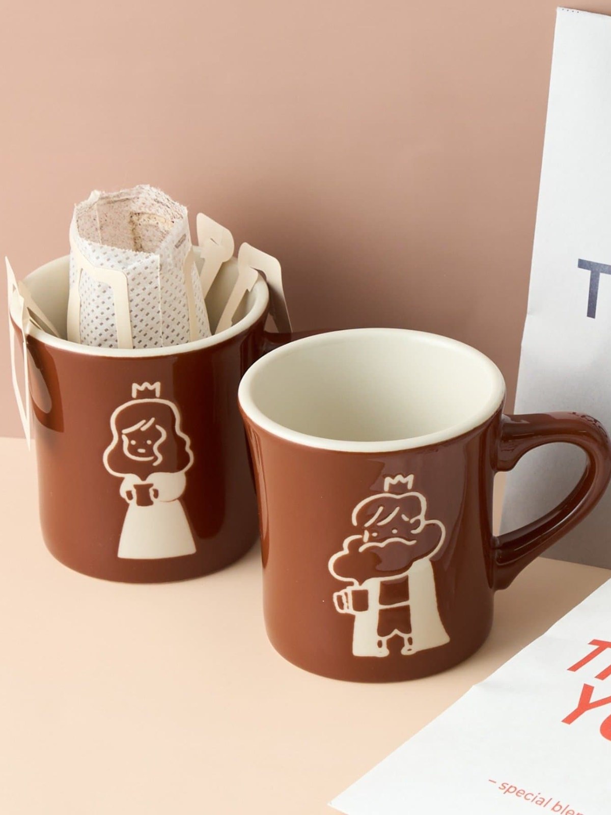 瓷器(美濃瓷器) 一對馬克杯,杯身上印有知名插畫家 COFFEE BOY 為 Mug Style 獨家繪製的卡通人物