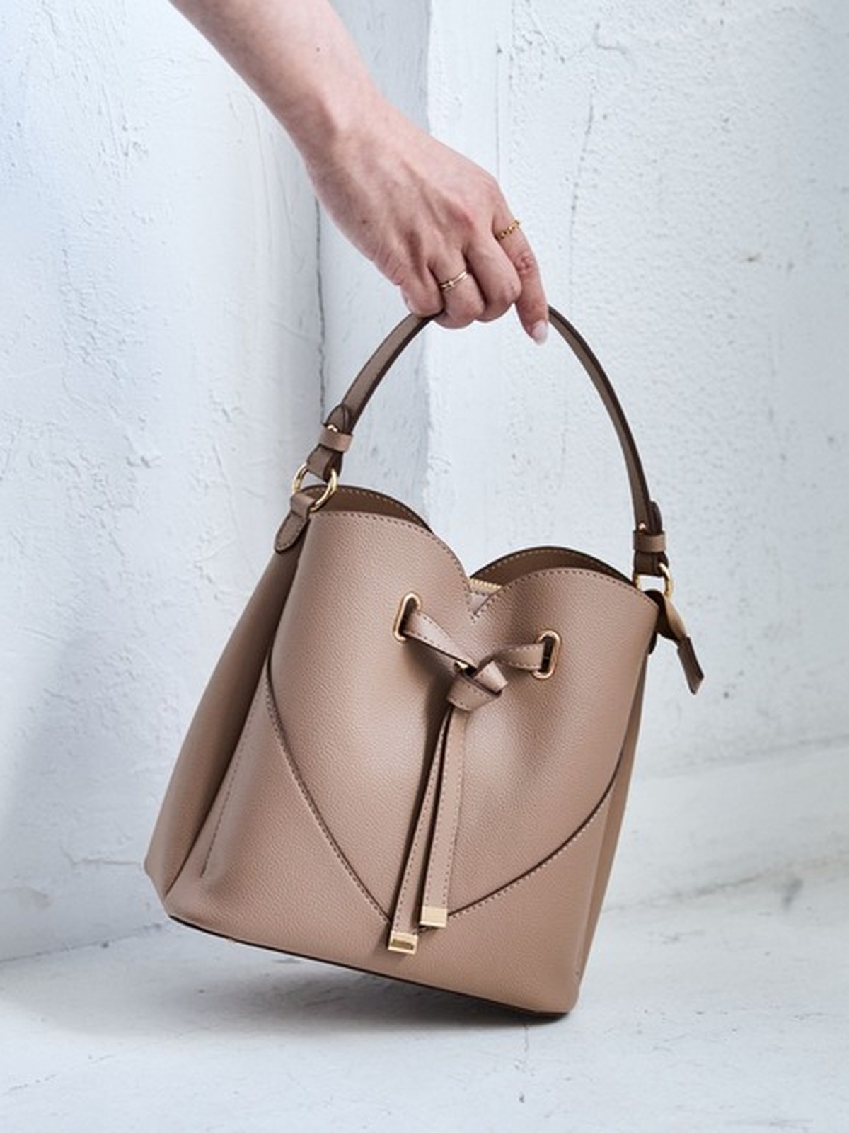 仔細觀察,你會發現一顆心。 這款兩用包款的設計初衷,就是為了打造一款讓你怦然心動的包款。 【主要特色】 - 內部採用三層設計,方便整理物品,拉鍊隔層可隱藏物品。 - 口袋位置經過精心設計,即使拉鍊拉上,也能輕鬆取用手機和其他物品。 - 附有可拆卸肩帶。 - 底部採用結實的鉚釘,減少底部磨損。 - 粉紅點綴包邊,打造醒目的心型設計。 【材質】 壓紋仿皮,表面類似縮水紋理,不易顯髒。 口袋採用奢華的仿麂皮材質。