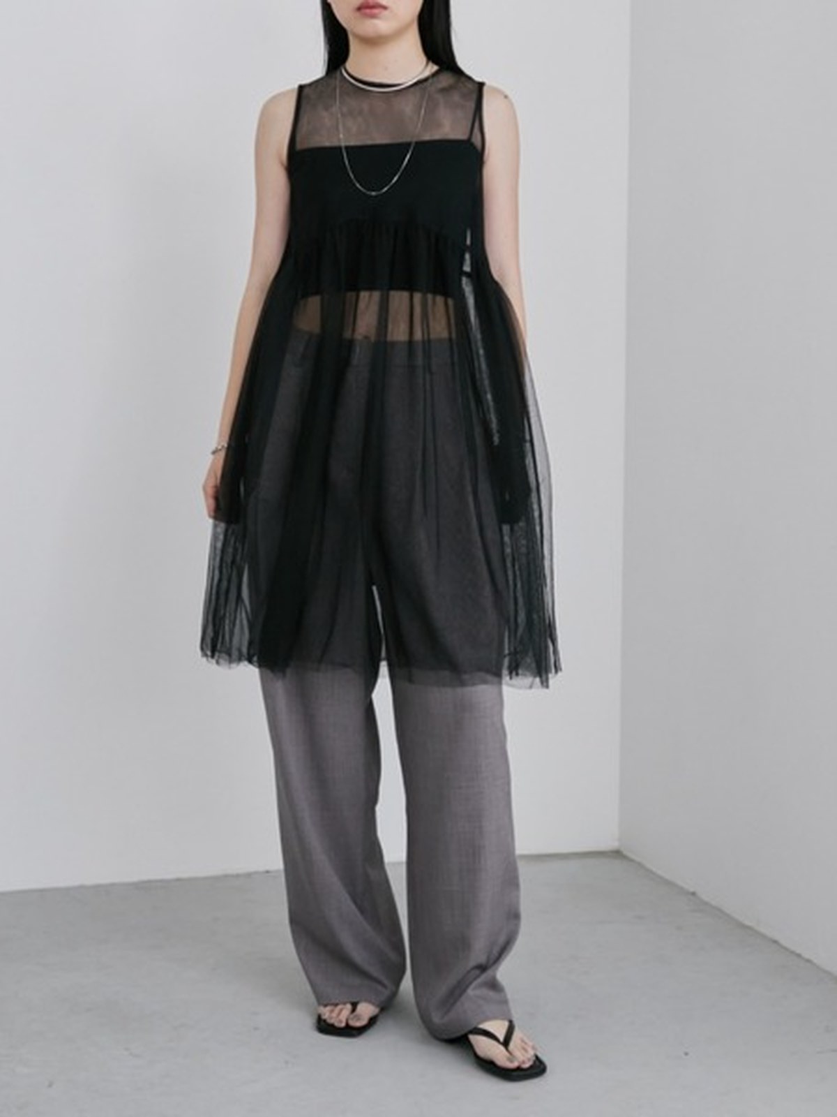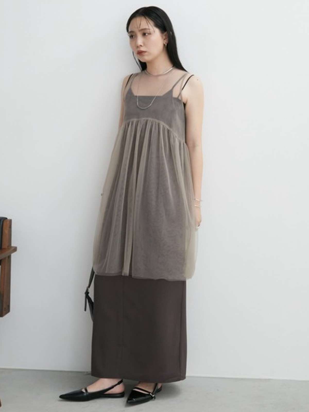 薄紗層次背心洋裝set