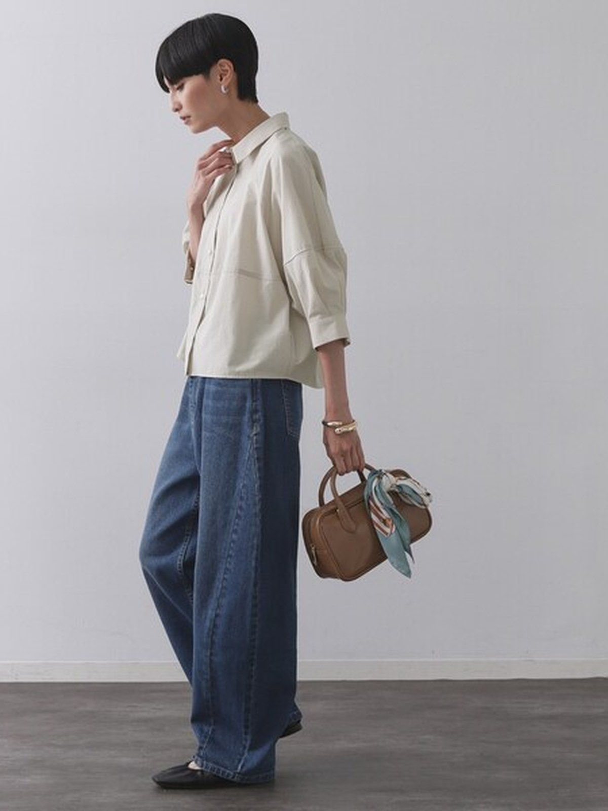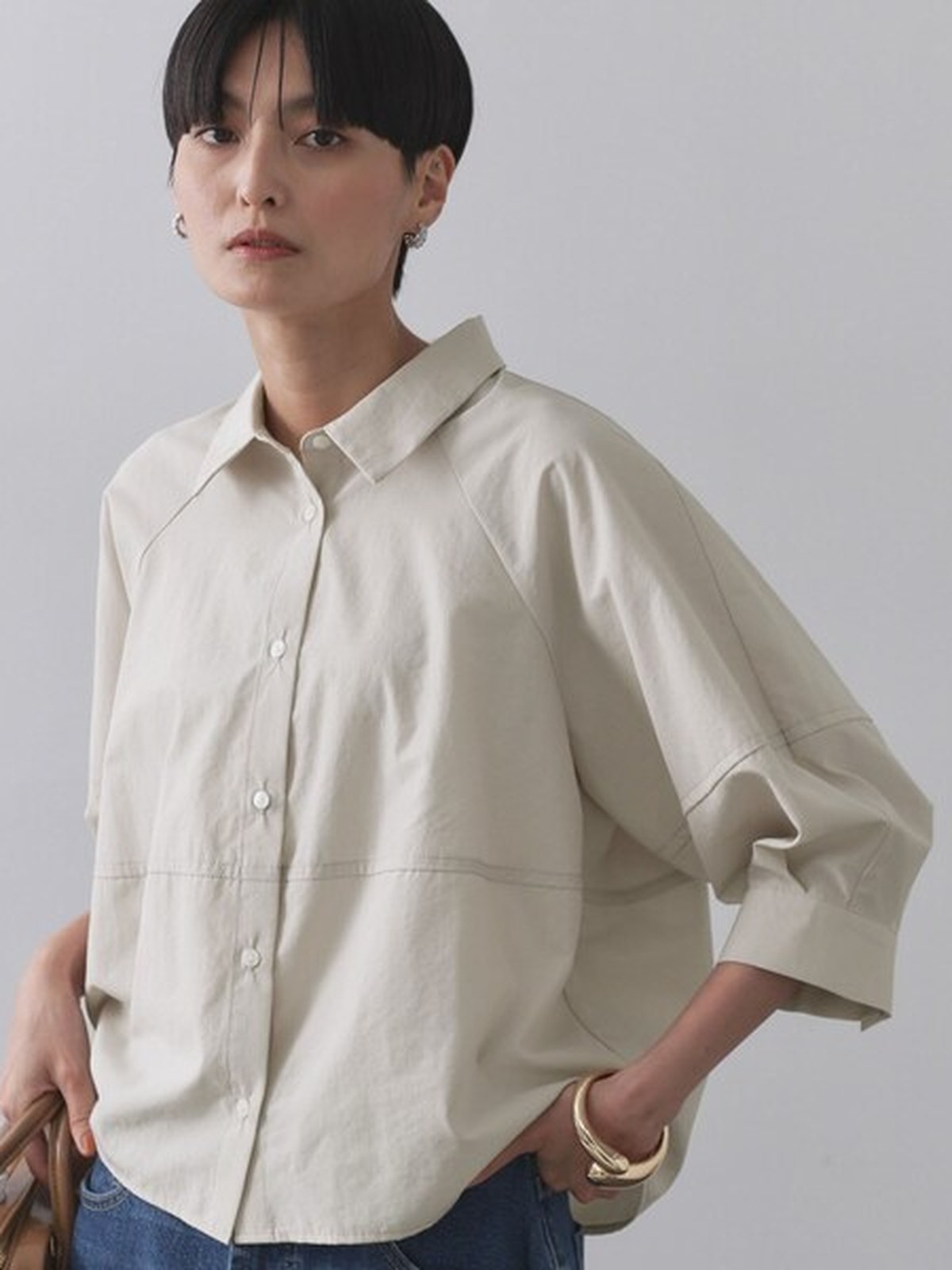 立體造型更添亮點! 這款襯衫式上衣也可作為輕便外套穿著。