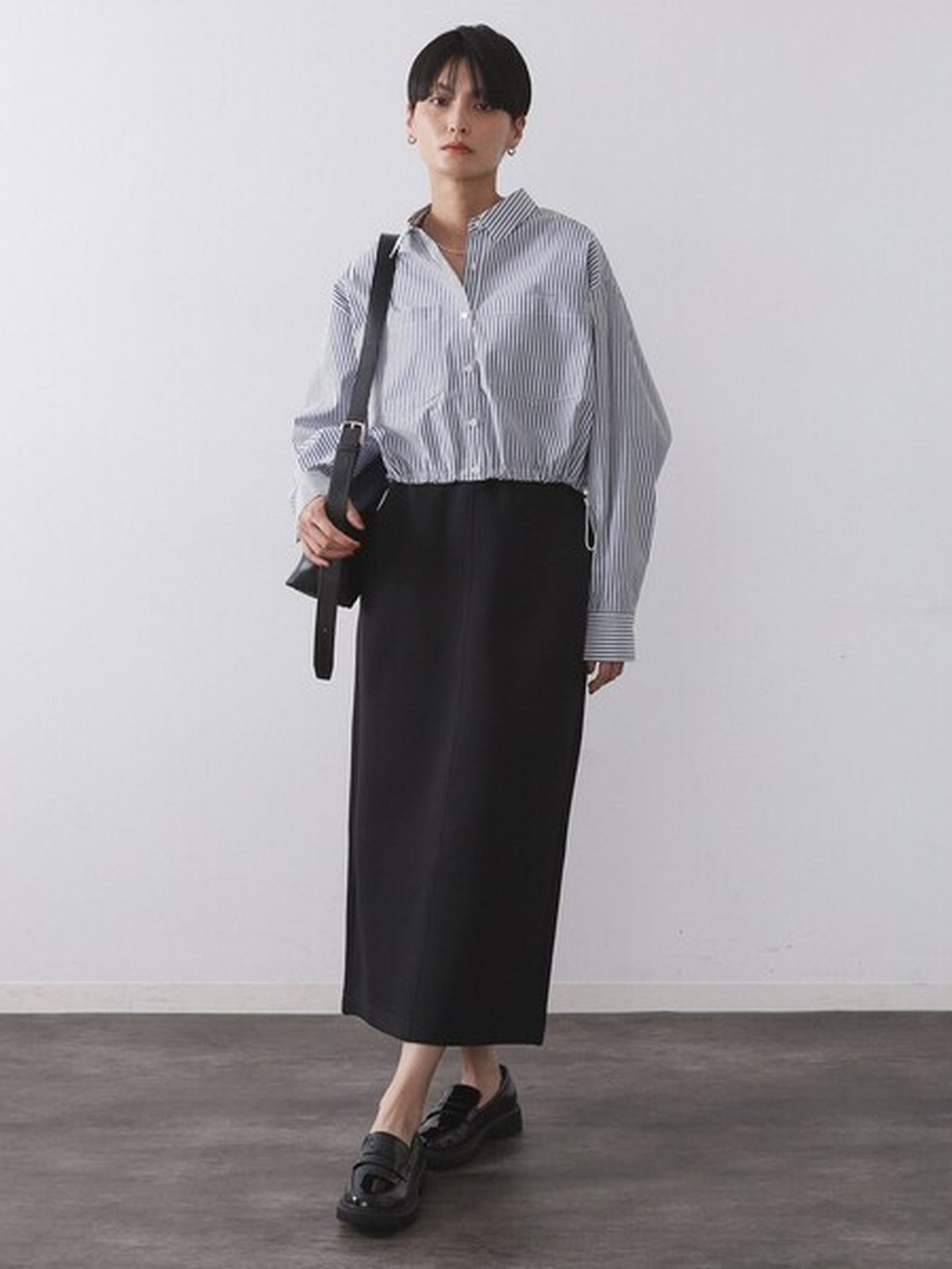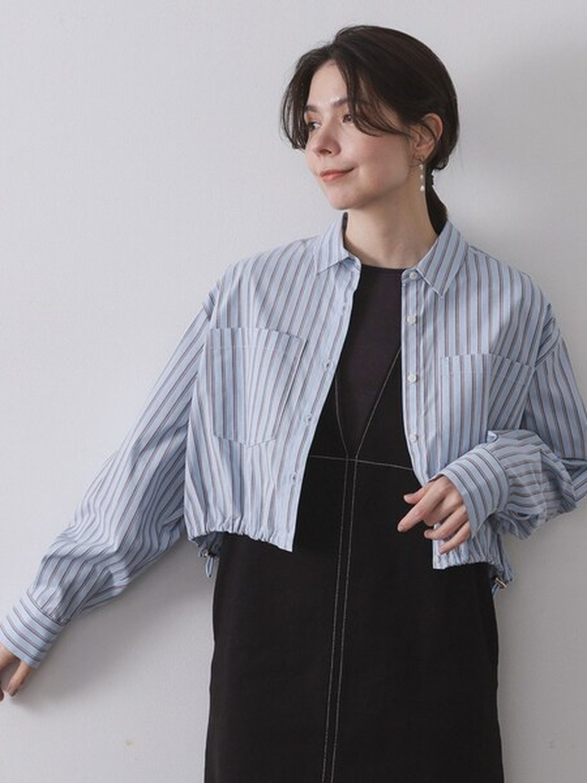 OPAQUE.CLIP 抽繩下擺短版襯衫