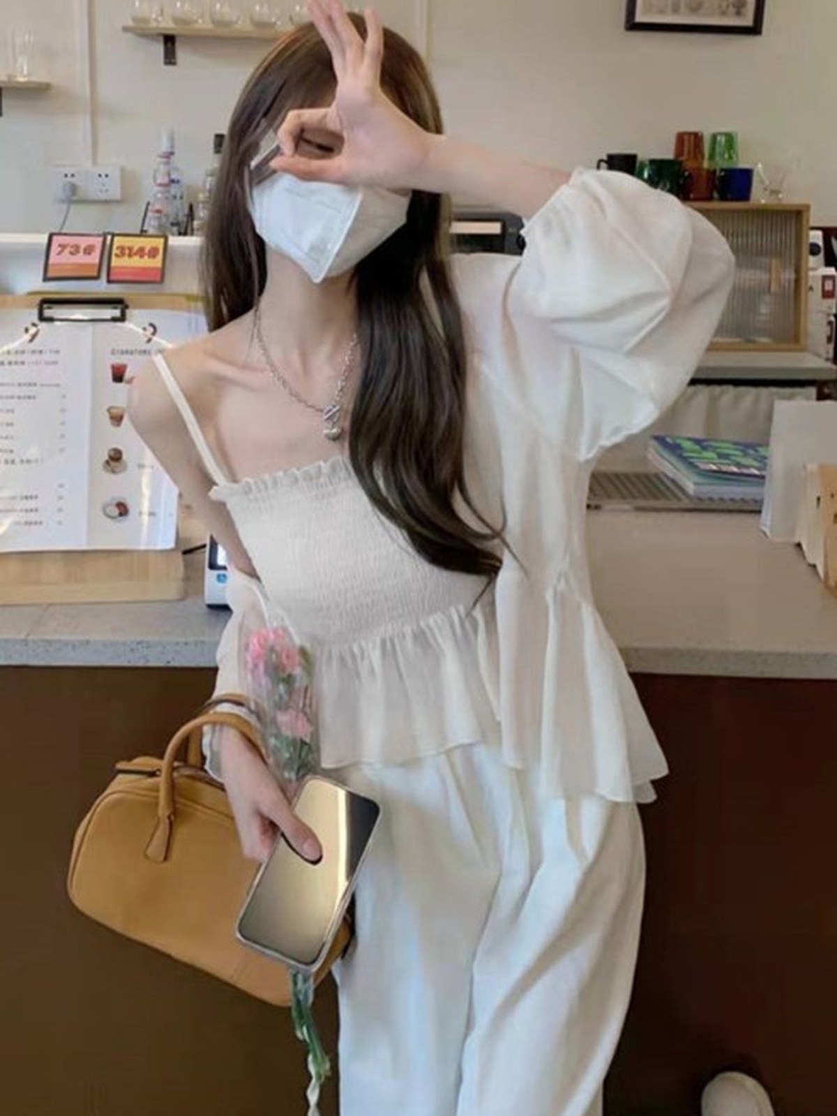 GRL 透紗襯衫+小背心SET