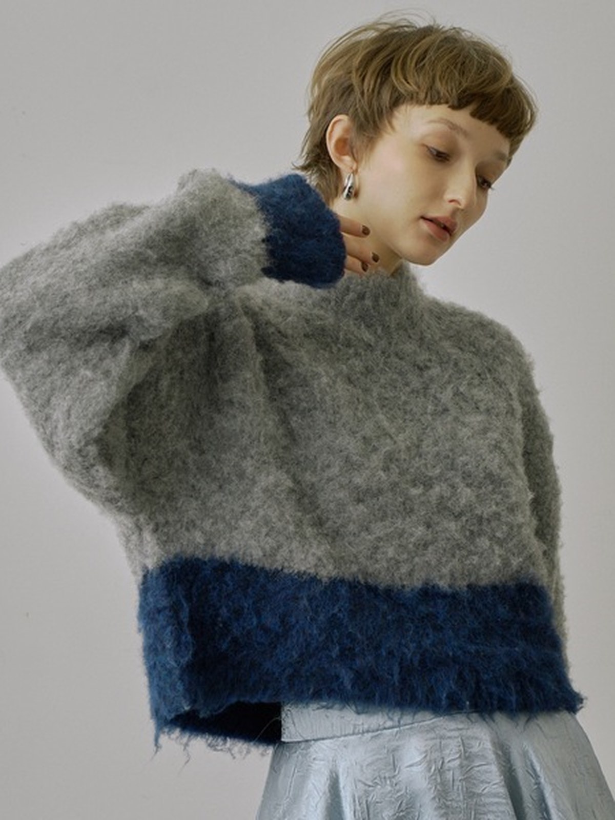 VIOLETTA 雙色馬海毛上衣