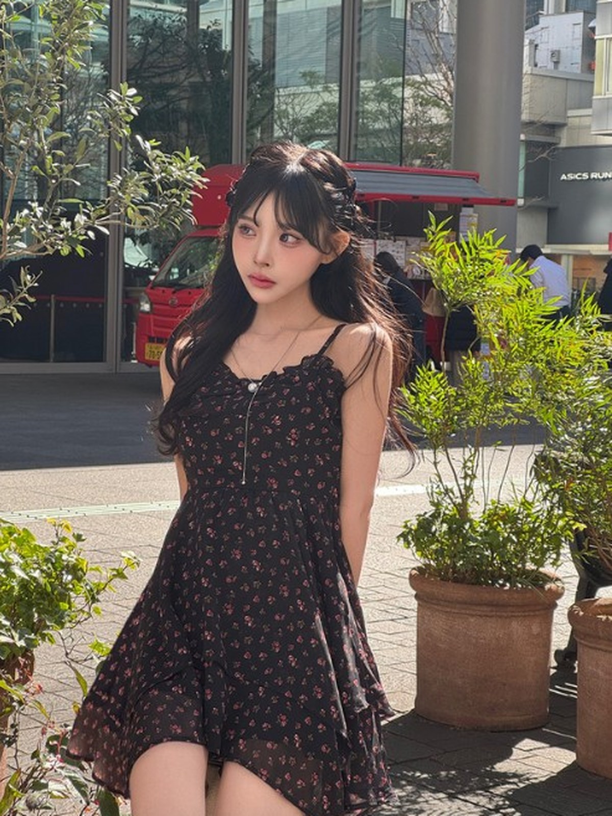 GRL 不對稱下擺碎花吊帶短洋裝